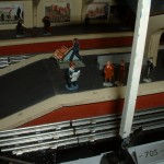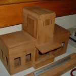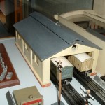 Der Prototyp für den englischen Many-Ways-Bahnhof – noch komplett aus Holz gefertigt. Das Hauptgebäude wurde ab 1937 aus Blech, der Turm aus Metallguss produziert. Die Bahnsteige wurden zunächst aus Holz, später aus Blech hergestellt.