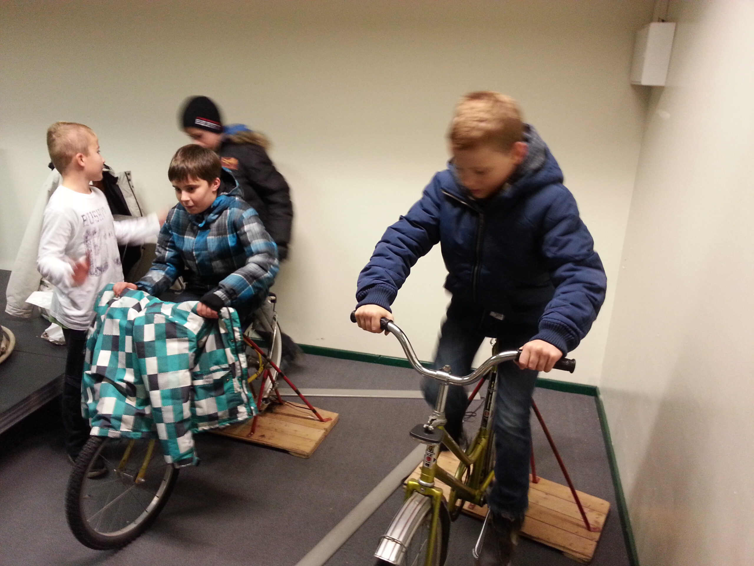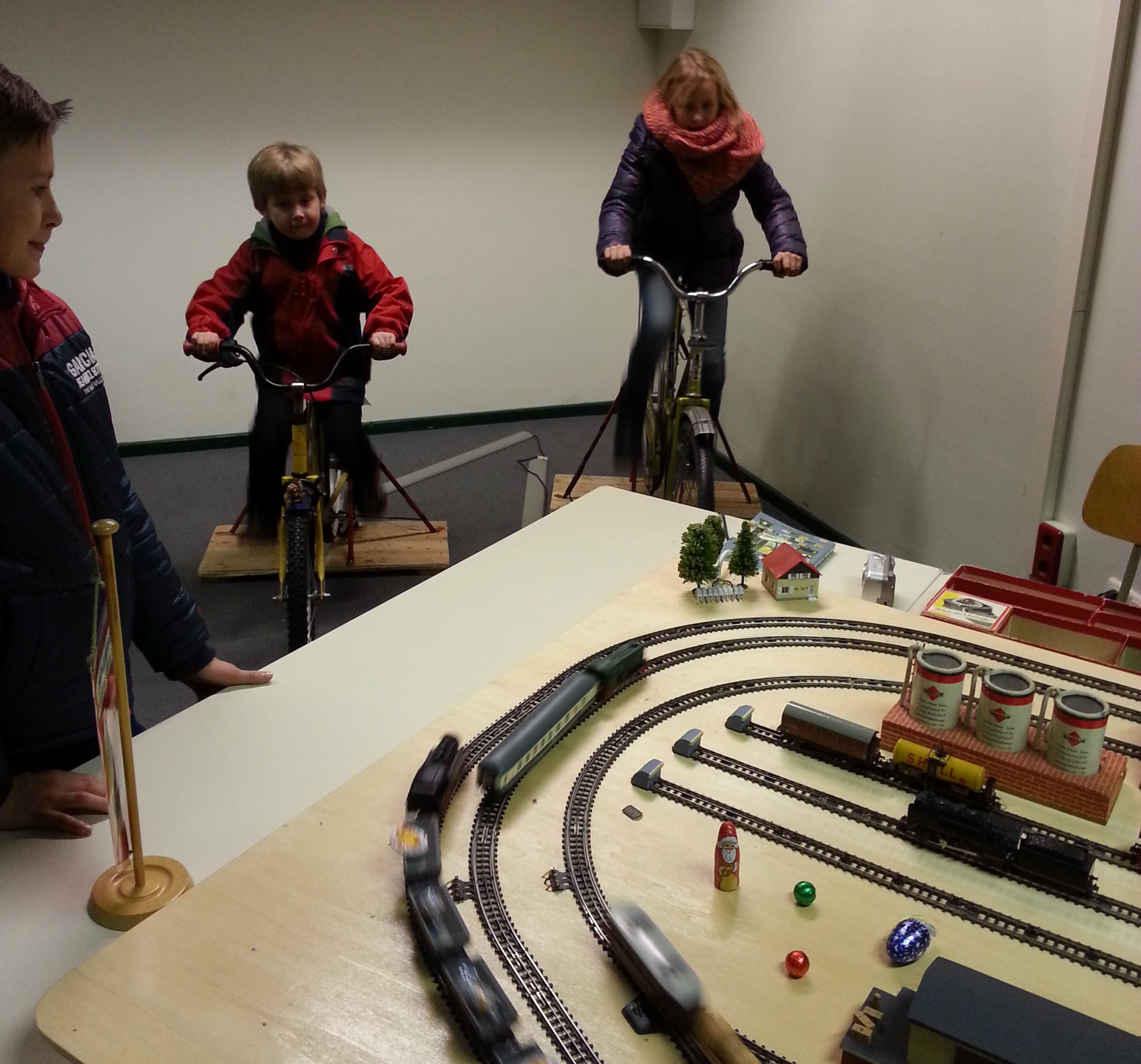 Auch die beiden Fahrräder waren ständig besetzt – zwei weitere Kinder treiben die Züge an.
