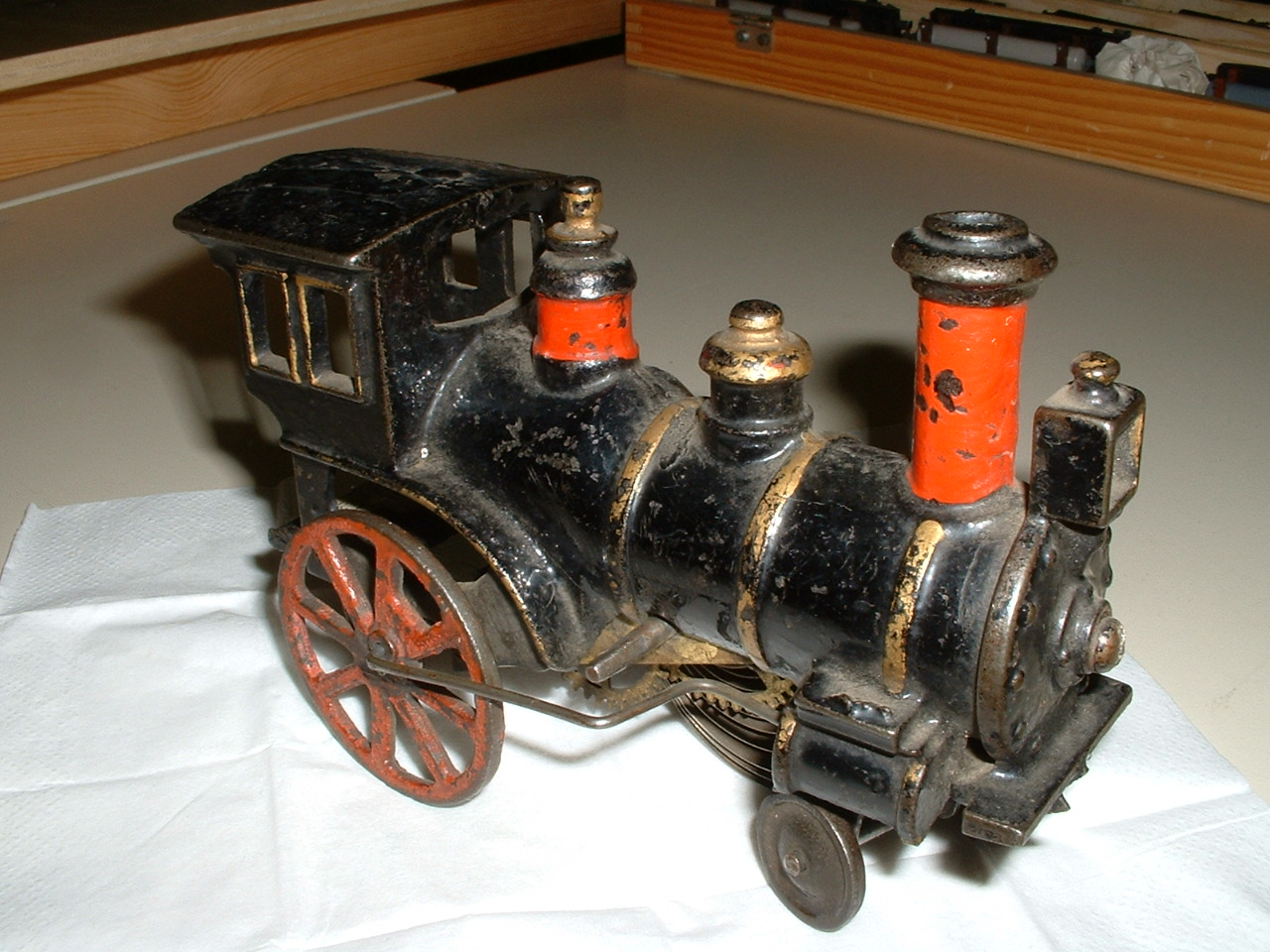 Da war z.B. ein uralter Bodenläufer mit Uhrwerk von 1890 zu sehen. Diese Lokomotive wurde aus schwerem Eisenguss von der amerikanischen Firma Ives Manufacturing Company hergestellt. Informationen zu dieser alten Firma gibt es auf einer Seite der TCA – The Train Collectors Association: Ives Trains
