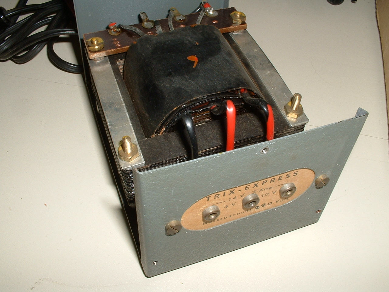 Dieser Transformator wurde offenbar im Jahr 1947 für den Schweizer Markt gebaut, um TRIX EXPRESS-Bahnen mit Strom zu versorgen. TRIX und die deutschen Transformatorenhersteller waren 1947 aber noch nicht in der Lage, Modellbahnen und Modellbahnzubehör zu produzieren. Die deutschen Firmen standen unter alliierter Kontrolle.