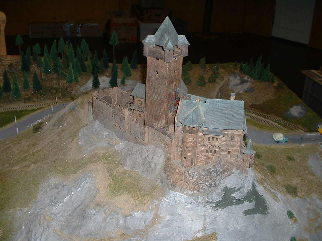Die Burg Falkenstein der Burg-Anlage. Diese Burg wird von Kibri angeboten und hat die Burg Niederfalkenstein bei Obervellach (Kärnten) zum Vorbild. Ein Tunnel der Tauernbahn führt beim Vorbild durch den Burgberg hindurch.